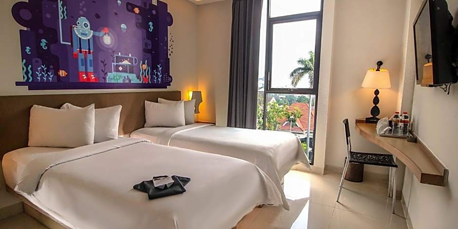 Providing free toiletries, this twin/double room includes a private bathroom with a walk-in shower and slippers. The air-conditioned twin/double room provides a flat-screen TV with cable channels, a mini-bar, a tea and coffee maker, a seating area as well as city views.
